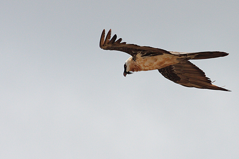 Oldoinyo Sambu and Lark Plains: on the recently ‘upgraded’ Nairobo road, about an hour out of Arusha, one comes to the scene of the weekly Maasai livestock market of Oldoinyo Sambu. At this ramshackle village, in addition to those ever present commensal scavengers – Yellow-billed Kites, Pied Crows and Red-winged Starlings one can occasionally meet with a great bird that is a true master of the skies. For one of the most magnificent of all flying beings, the Lammergeier, also known as Bearded Vulture or Bone-breaker, sometimes descends from eyries on the cliff-girt fastness of Mount Meru to the korongo at the back of the village. It comes in search of bones, thrown there by the decidedly earth-bound butchers, on Maasai market day. During the northern winter huge Steppe Eagles soaring on flat, broad wings join the smaller local Tawny Eagles who circle the village removing smaller scraps of offal from the vicinity of the market.