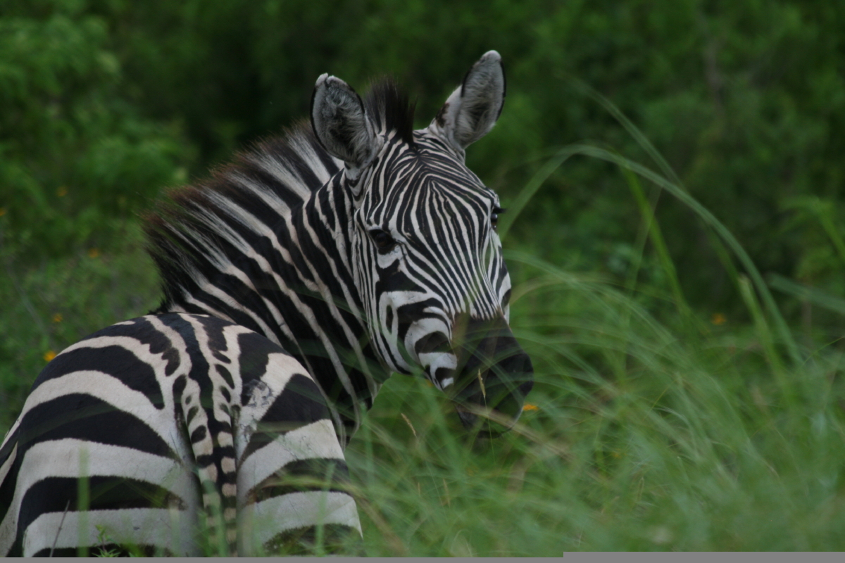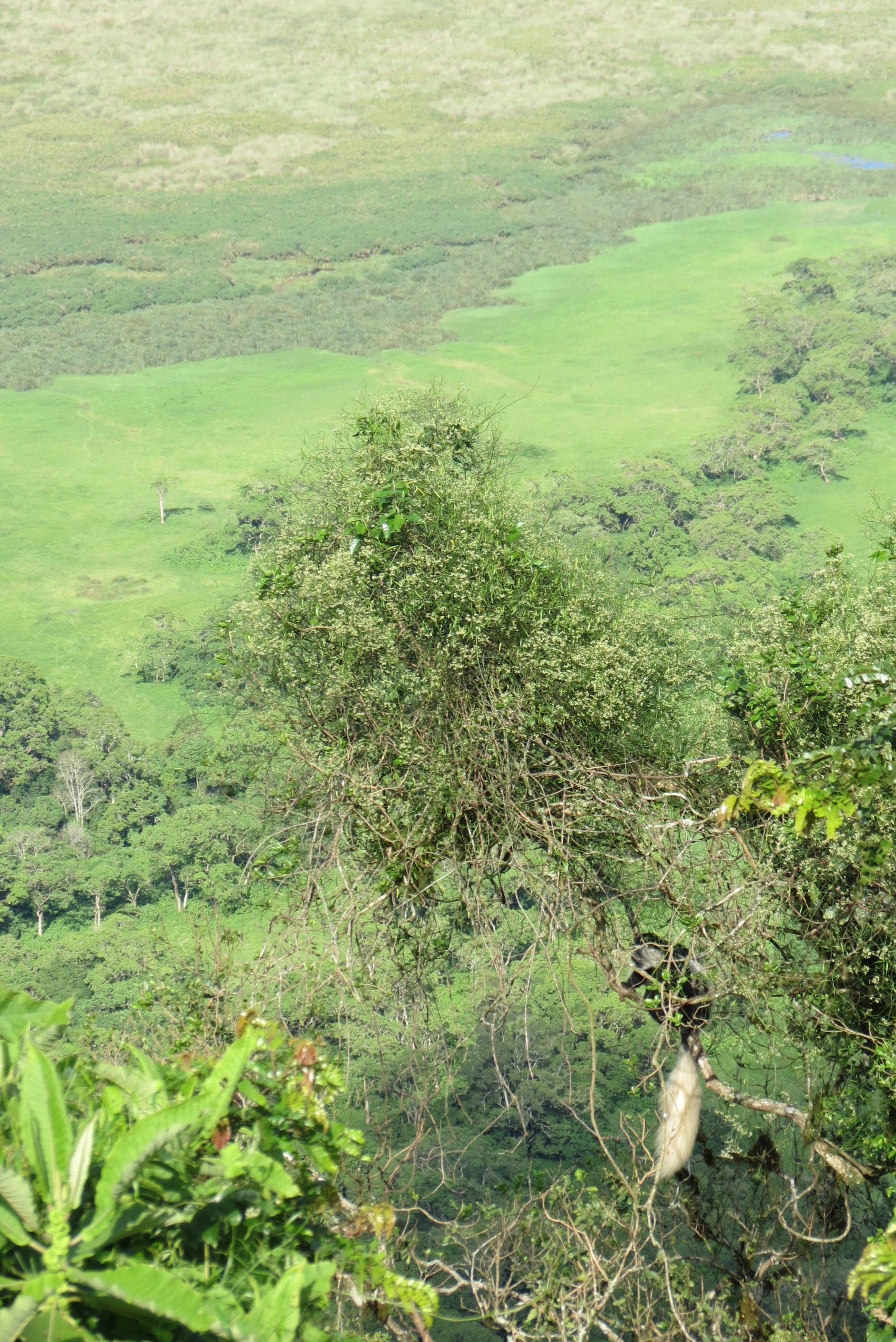 From the viewpoints along the Ngurdoto crater rim, furnished with a decent telescope, one can carefully scan the pristine marshy floor below. Hippos can be heard, haughtily snorting and guffawing, from the cool seclusion of great stands of papyrus; whilst large herds of buffalo graze or loaf, just chewing the cud, in the lush encircling pasture. In the tree tops all around you black and white robed Guereza Colobus (Colobus guereza caudatus) munch, seemingly interminably, on the poor nutrition of countless forest leaves; their guttural roaring chorus of audio-segregation is often joined by the tinny braying of ‘forest burros’, the cacophony which accompanies the effusive and distinctly clown-like antics of Silvery-cheeked Hornbills as they fly between the tree tops or bound through the crown of some forest noble.