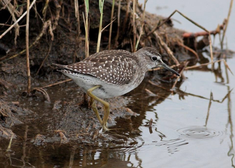 Soon after arriving at the pools, above the snorting, grunting and aqueous farting of those chubby four-footed leviathans, I heard a long-time familiar tremulous teetering, the flight calls of a Common Sandpiper. Sure enough, within seconds, one flew into view, low over the pool, on stiff staccato wing beats. It alighted near us, and almost immediately commenced feeding, pecking delicately in the fragrant ooze of the muddy shoreline. Watching it in the wallows I was both delighted and relieved.
