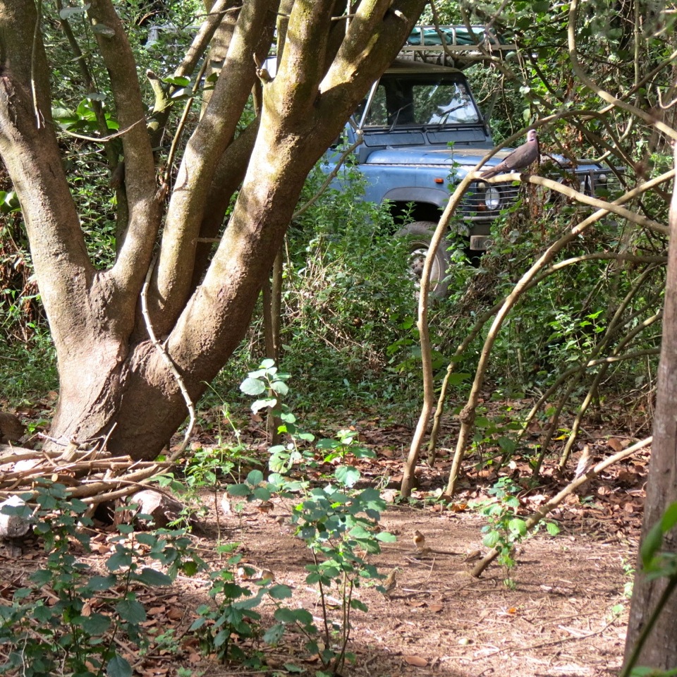 A wildlife tour group, as here, is escorted by an armed ranger to protect them from wild cattle (i.e. African Buffalo) into the deep and shady evergreen forest of Arusha National Park in northern Tanzania. Here we may observe not only leaf-chewing Colobus Monkeys and Gentle Monkeys, up close and highly personable too, but also a great variety of afrotropical forest birds and some magnificent butterflies.We can’t go birding in the National Parks and protected areas as often as we would wish. So we must bring Nature to our doorstep. To garden effectively for wildlife I have found, since 1983 when I started “Conservation Gardening” back in England, that one has to throw out a lot of ecological preconceptions. The first and most important lesson is understanding that most ecosystems need some serious cyclical disturbance in order to be more fully productive. Here you can see some recent, pre-rains, disturbance outside our front steps. It’s not everybody’s ‘cup of tea’ but certainly hooches with wildlife. In many ecoregions ideally you’ll need some kind of cattle. But in the absence of unmedicated cows one has to improvise. Obviously we’re not having anything to do with biocides such as avermectin or diclofenac et al. which may render cattle dung extremely toxic to most fly and beetle species. Cows are the single most important mammalian bridge to healthy diversity. For thousands of years they have been a link between our “ersatz ecosystems” of organic farming, gardening and the former “wild wood”. Without room for cattle we import their “waste products” from a nearby farm and attempt to replicate their trampling, wallowing and browsing just as if they were here – walking daily through “our garden”. It’s not an easy task, but it is much better to be a Copy Cow than there be no cattle action whatsoever in the garden.Alien plants are tolerated to a degree if they support a significant number of animal species. However in the case of Lantana camara such tolerance requires extreme vigilance, and daily intervention, as this species can grow at nearly a centimetre a day in the warm wet season of November-February.Indigenous cereal seed is scattered at certain times of the year to attract granivorous birds, such as doves and weavers, who in return gently fertilise the woodland floor, after their morning feeding period, particularly below their favoured perches in the canopy.