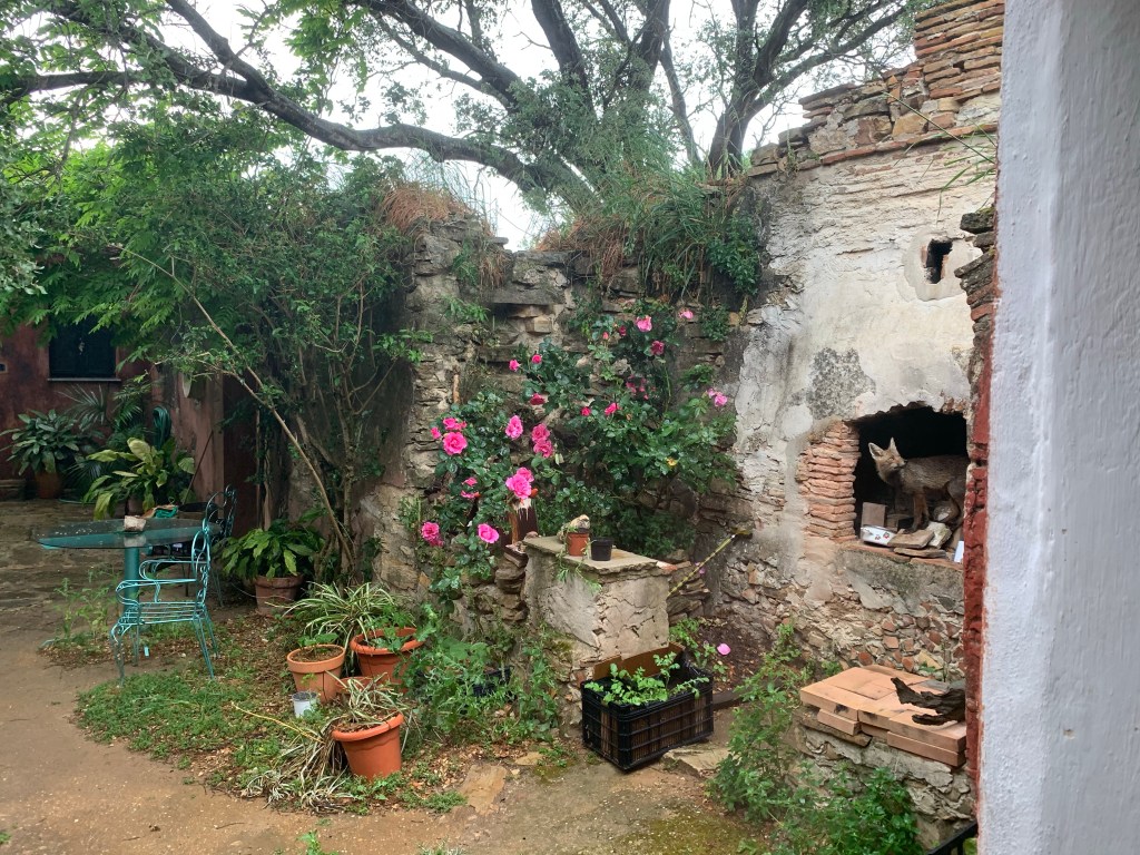 He was calling directly above what is nowadays a beetle bejewelled compost heap. It’s a re-wilded diorama (of many here) that I’ve hidden in the fallen hedge of prickly pear cactus who return to the dust behind a little hut of crumbling cement.