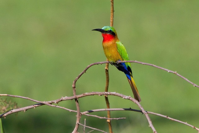 These dry plains, in the rain shadow of Mount Meru and Mount Kilimanjaro, provide perfect habitats for larks, so in addition to Beesley’s we will be searching for Pink-breasted, Athi Short-toed, Short-tailed, and Foxy Larks. The open landscape can be very good for raptors too, and (in season) we can hope to see migrant Montagu’s Harriers, Lesser Kestrels, and Amur Falcons joining the resident Greater and Common (Rock) Kestrels. In this distinctly dry habitat we’ll also find for the first time short grass savanna species typical of the larger protected areas farther to the west, such as Eastern Chanting Goshawk, African Pygmy Falcon, Chestnut-bellied Sandgrouse, Double-banded Courser, Crowned Lapwing, Abyssinian Scimitarbill, Red-fronted, Red-and-Yellow, and Spot-flanked Barbets, Ashy and Tiny Cisticolas, Purple Grenadier, Eastern Paradise and Straw-tailed Whydahs, and Somali Golden-breasted Bunting, while mammals could include African Golden Wolf, the elegant Gerenuk, and, with great luck, Lesser Kudu.